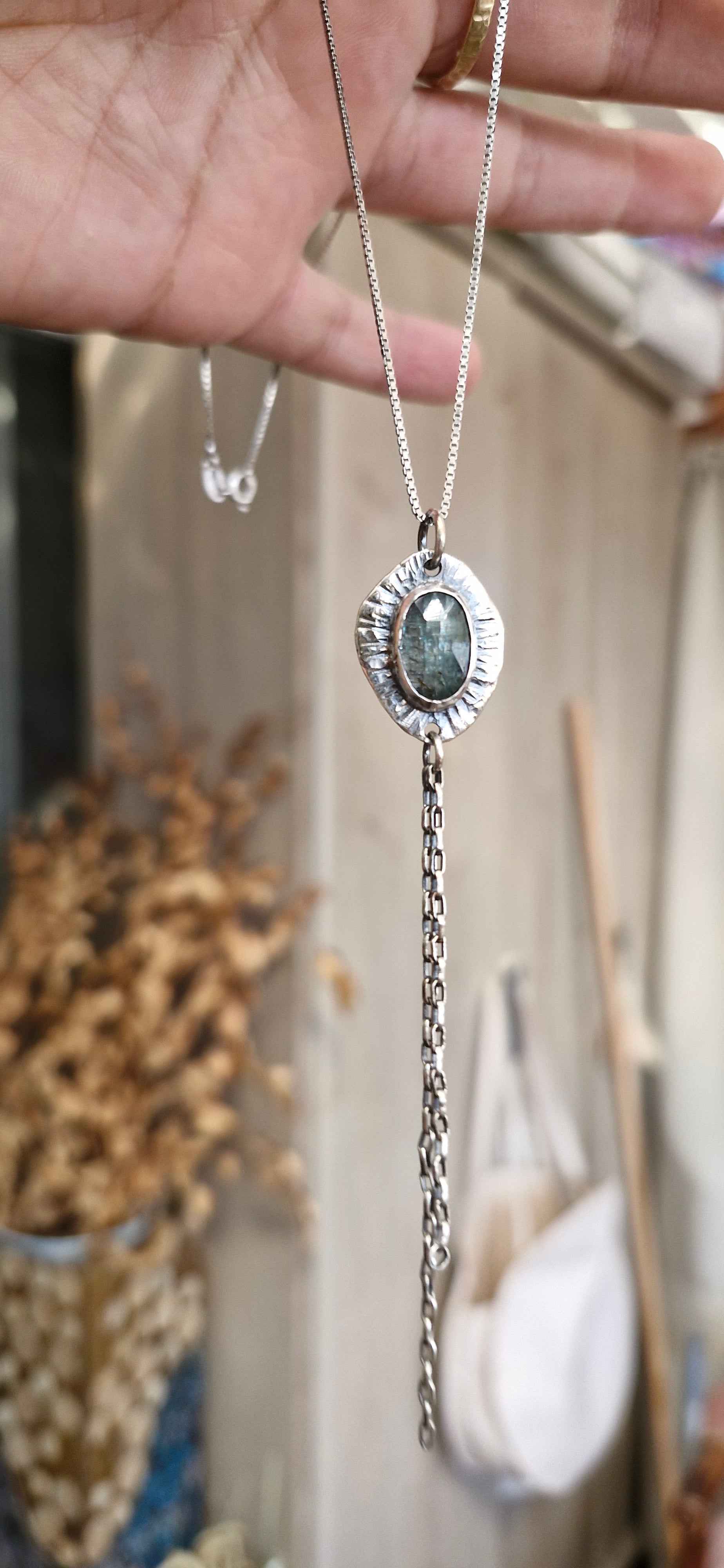 Mint Kyanite rose cut necklace